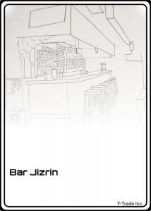 Nach einer erfolgreichen Datenrecherche erhält der Spieler eine Adresse im Wohnkomplex 23 der Station (siehe unten). - Getränkegutschein für die Bar Jizrin: Die Bar Jizrin kann sofort an einem öffentlichen Terminal oder über ein Qad gefunden werden. Die Bar liegt in den unteren Ebenen und ist scheinbar ein sehr schäbiger Ort. Krallen mit der Verbindung zu der Verbrecherorganisation Ursu’s Hand wissen, dass dies einer von drei Treffpunkten ist, die von der Organisation genutzt werden.